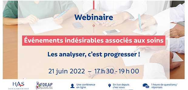 Le mardi 21 juin 2022 de 17h30 à 19h00 – Webinaire HAS/FORAP – Événements indésirables associés aux soins (EIAS) : les analyser, c’est progresser !